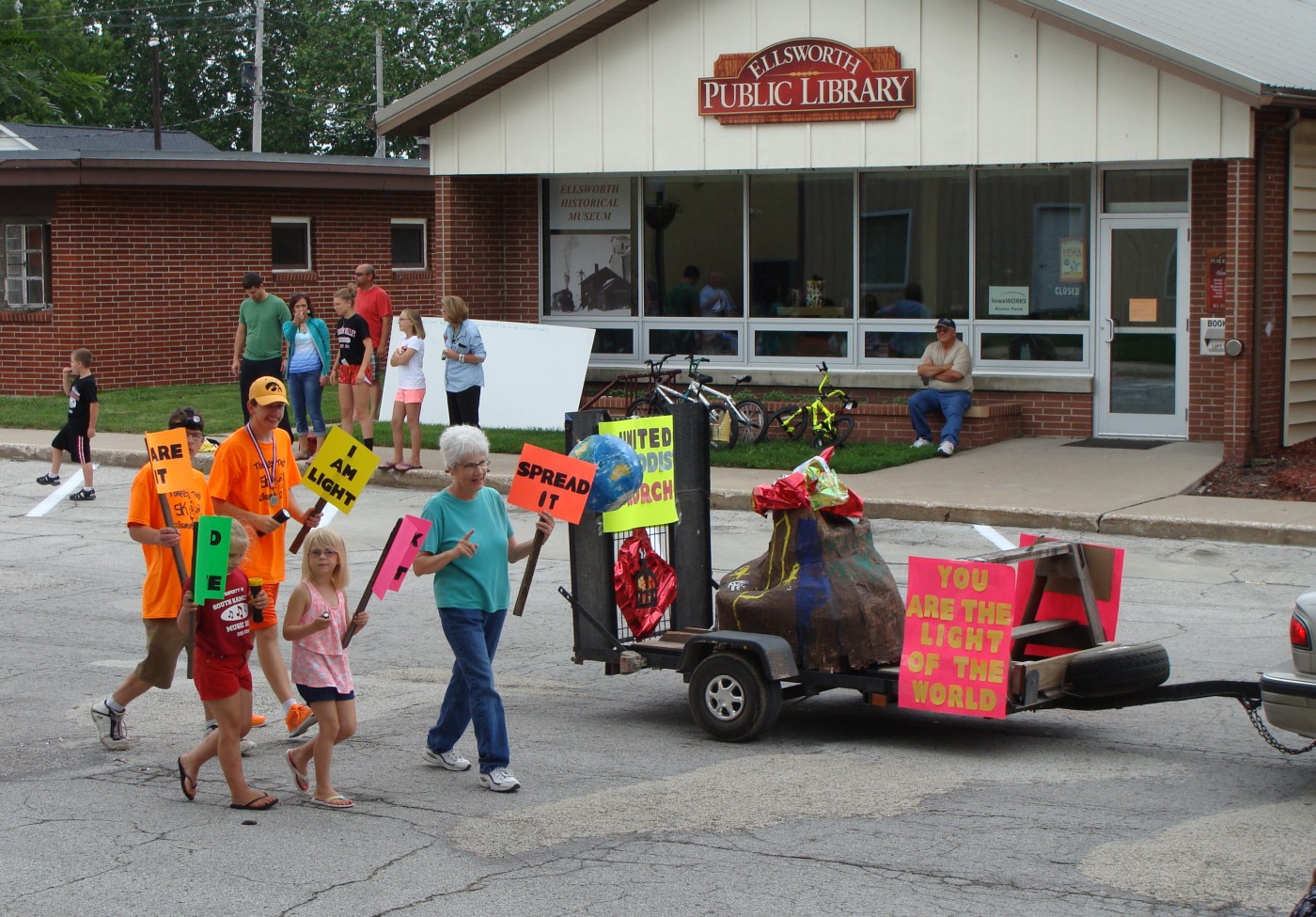 Linda and the Kingdom Kids sang their Bible School songs during the whole parade!
