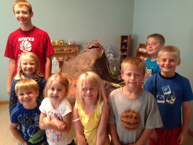 We painted it and added all the things we might find on the mountain like waterfalls, paths and animals.