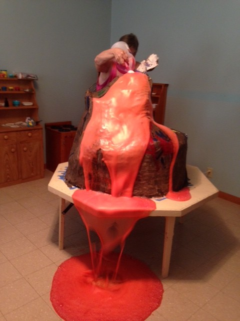 The volcano and an image of Shadrach, Meshach and Abednego were part of our float