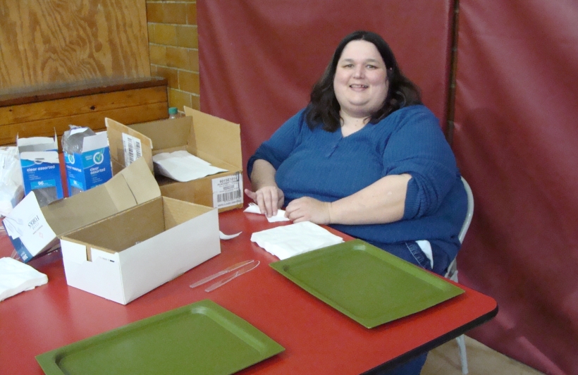 Linda prepares the kitchen to be ready for the 5pm Ash Wednesday event.