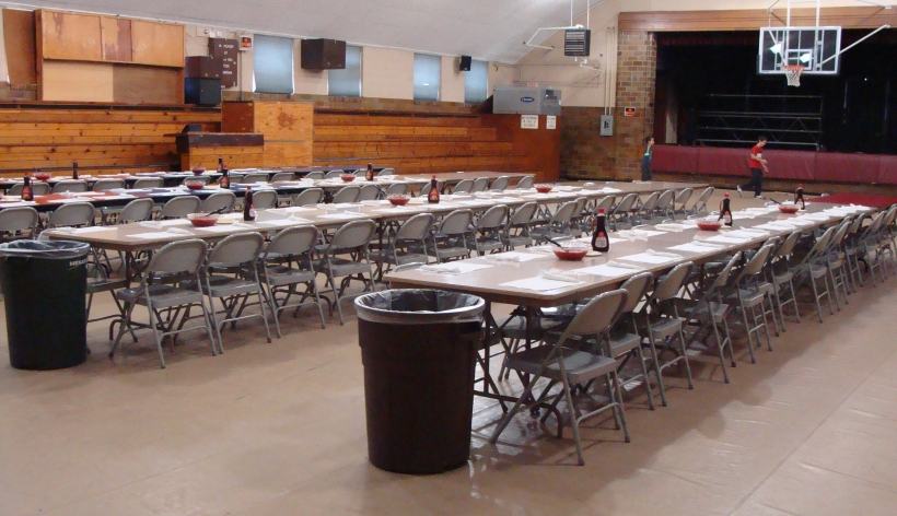 The Community Center Gym is now ready for the hungry guests to come at 5pm.