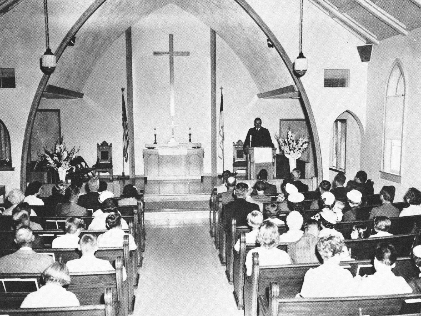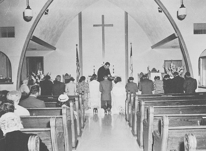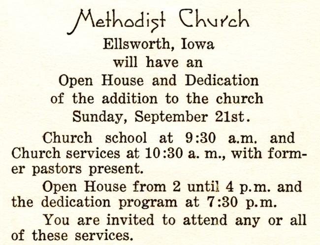The active youth organization was known at first as the Christian Endeavor, then the Epworth League, and still later as the Methodist Youth Fellowship. The women’s organization was known first as Union Aid Society, later as Women’s Society of Christian Service, and finally as United Methodist Women. The church school was very active and the Methodist Christian Club for younger children was formed in 1955. Vacation Bible School was begun in 1953. Married couples formed The Friendship Society. They furthered several projects in the interest of the church. A Family Fellowship Night was held on the 4th Sunday of each month, with a pot luck supper and a social evening. Later, Family Night was held once a month, with everyone bringing their favorite games and popcorn.
