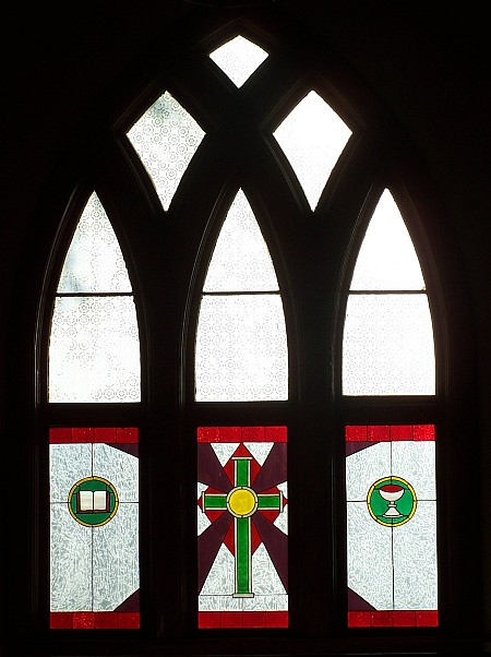 Stained Glass windows made by church member Terry Brooks and Pastor Dean Hokel.
